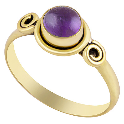 Gorgeous Handcrafted Wire Work Around Amethyst Round Shape Solid Brass Ring