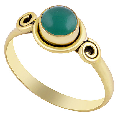Gorgeous Handcrafted Wire Work Around Green Onyx Round Shape Solid Brass Ring