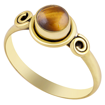 Gorgeous Handcrafted Wire Work Around Tiger's Eye Round Shape Solid Brass Ring