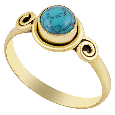 Gorgeous Handcrafted Wire Work Around Turquoise Round Shape Solid Brass Ring