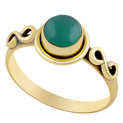 Home | Fashion Rings | Brass Gemstone Rings | Gorgeous Coil Work Around Green Onyx Round Shape Solid Brass Ring