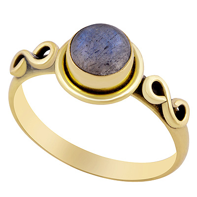 Home | Fashion Rings | Brass Gemstone Rings | Gorgeous Coil Work Around Labradorite Round Shape Solid Brass Ring