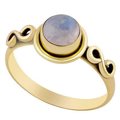 Home | Fashion Rings | Brass Gemstone Rings | Gorgeous Coil Work Around Rainbow Moonstone Round Shape Solid Brass Ring