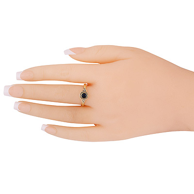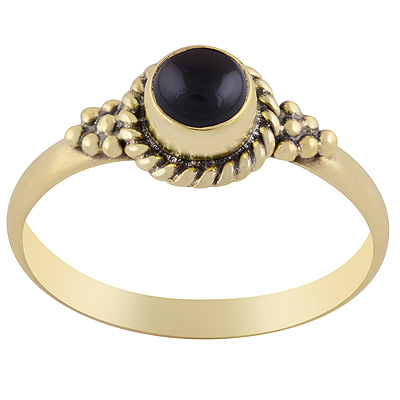 Beautiful Plain Wire & Rawa Work Around Black Onyx Round Shape Solid Brass Ring