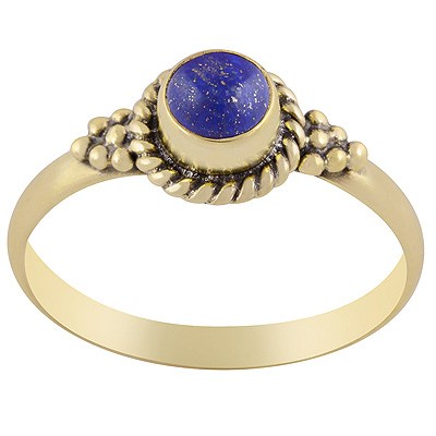 Beautiful Plain Wire & Rawa Work Around Lapis Round Shape Solid Brass Ring