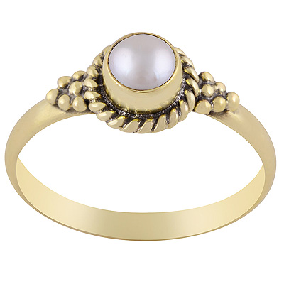 Beautiful Plain Wire & Rawa Work Around Pearl Round Shape Solid Brass Ring