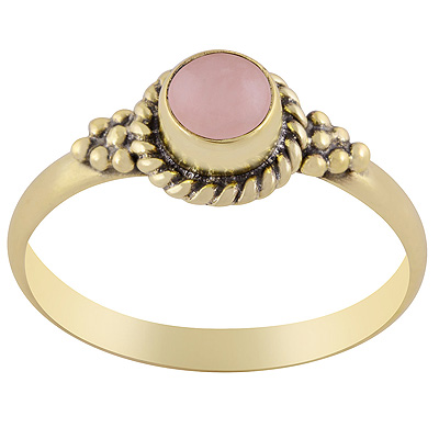 Beautiful Plain Wire & Rawa Work Around Rose Quartz Round Shape Solid Brass Ring