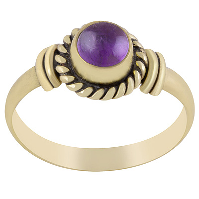 Home | Fashion Rings | Brass Gemstone Rings | Beautiful Twisted Wire Work Around Amethyst Round Shape Solid Brass Ring