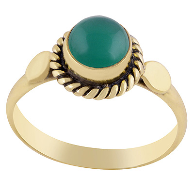Gorgeous Handcrafted Circle Around Green Onyx Round Shape Solid Brass Ring