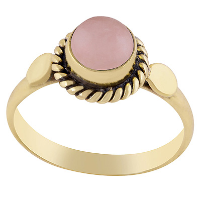 Gorgeous Handcrafted Circle Around Rose Quartz Round Shape Solid Brass Ring
