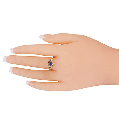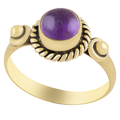 Alluring Twisted Wire & Rawa Work Around Amethyst Round Shape Solid Brass Ring
