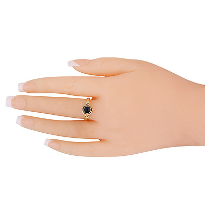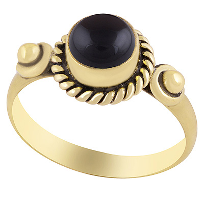 Alluring Twisted Wire & Rawa Work Around Black Onyx Round Shape Solid Brass Ring