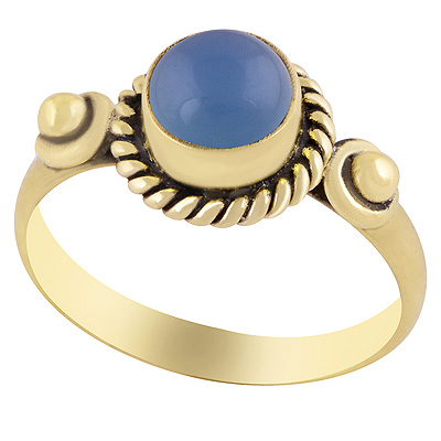 Alluring Twisted Wire & Rawa Work Around Blue Chalcedony Round Shape Solid Brass Ring