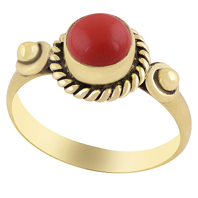 Alluring Twisted Wire & Rawa Work Around Coral Round Shape Solid Brass Ring