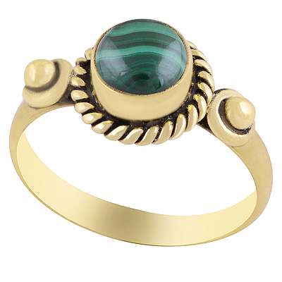 Alluring Twisted Wire & Rawa Work Around Malachite Round Shape Solid Brass Ring