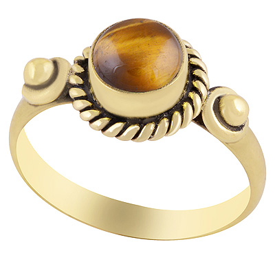 Alluring Twisted Wire & Rawa Work Around Tiger's Eye Round Shape Solid Brass Ring