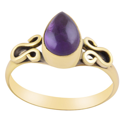 Gorgeous Handcrafted Wire Work Around Amethyst Pear Shape Solid Brass Ring