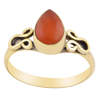 Gorgeous Handcrafted Wire Work Around Carnelian Pear Shape Solid Brass Ring