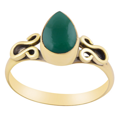 Gorgeous Handcrafted Wire Work Around Green Onyx Pear Shape Solid Brass Ring