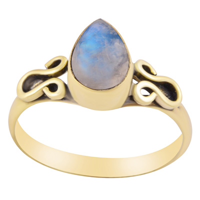 Home | Fashion Rings | Brass Gemstone Rings | Gorgeous Handcrafted Wire Work Around Rainbow Moonstone Pear Shape Solid Brass Ring