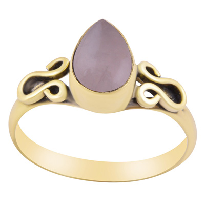 Gorgeous Handcrafted Wire Work Around Rose Quartz Pear Shape Solid Brass Ring