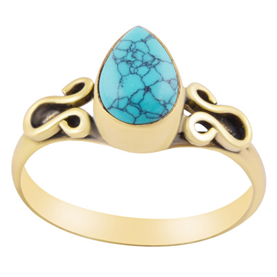Gorgeous Handcrafted Wire Work Around Turquoise Pear Shape Solid Brass Ring