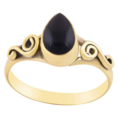 Home | Fashion Rings | Brass Gemstone Rings | Gorgeous Coil Work Around Black Onyx Pear Shape Solid Brass Ring