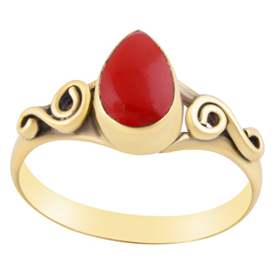 Home | Fashion Rings | Brass Gemstone Rings | Gorgeous Coil Work Around Coral Pear Shape Solid Brass Ring