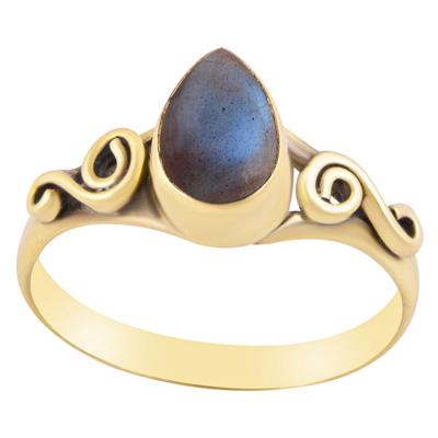 Home | Fashion Rings | Brass Gemstone Rings | Gorgeous Coil Work Around Labradorite Pear Shape Solid Brass Ring