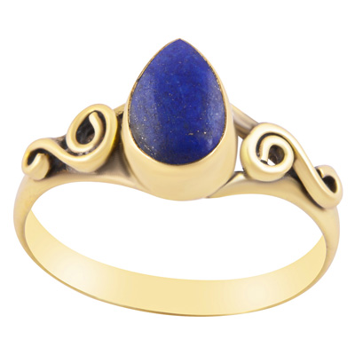 Home | Fashion Rings | Brass Gemstone Rings | Gorgeous Coil Work Around Lapis Pear Shape Solid Brass Ring