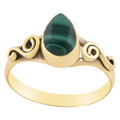 Home | Fashion Rings | Brass Gemstone Rings | Gorgeous Coil Work Around Malachite Pear Shape Solid Brass Ring