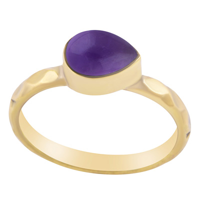 Home | Fashion Rings | Brass Gemstone Rings | Gorgeous Textured Work Band Around Amethyst Pear Shape Solid Brass Ring