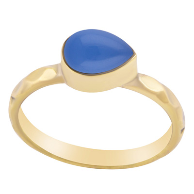 Home | Fashion Rings | Brass Gemstone Rings | Gorgeous Textured Work Band Around Blue Chalcedony Pear Shape Solid Brass Ring