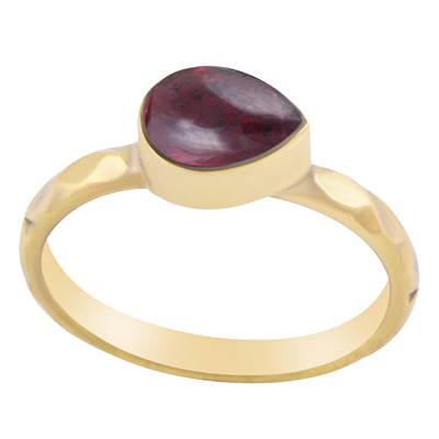 Home | Fashion Rings | Brass Gemstone Rings | Gorgeous Textured Work Band Around Garnet Pear Shape Solid Brass Ring