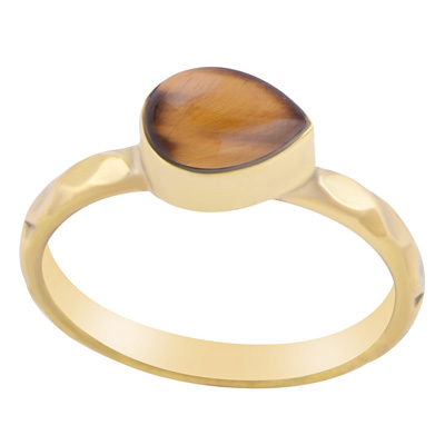 Home | Fashion Rings | Brass Gemstone Rings | Gorgeous Textured Work Band Around Tiger's Eye Pear Shape Solid Brass Ring