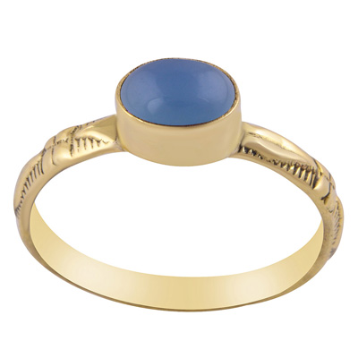 Home | Fashion Rings | Brass Gemstone Rings | Stunning Textured Work Band Blue Chalcedony Oval Shape Solid Brass Ring