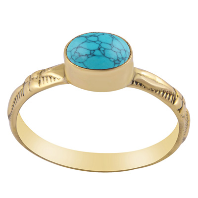 Home | Fashion Rings | Brass Gemstone Rings | Stunning Textured Work Band Turquoise Oval Shape Solid Brass Ring