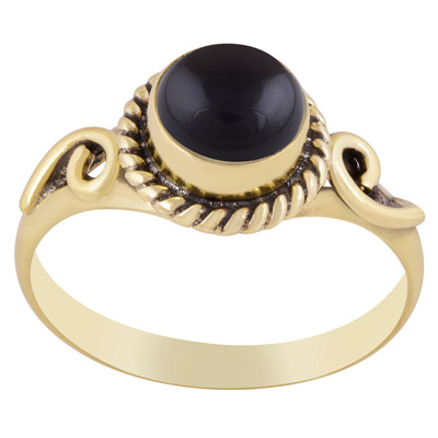 Beautiful Twisted Wire Work Around Black Onyx Round Shape Solid Brass Ring