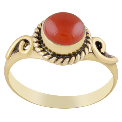 Beautiful Twisted Wire Work Around Carnelian Round Shape Solid Brass Ring