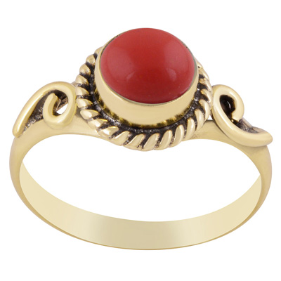 Beautiful Twisted Wire Work Around Coral Round Shape Solid Brass Ring