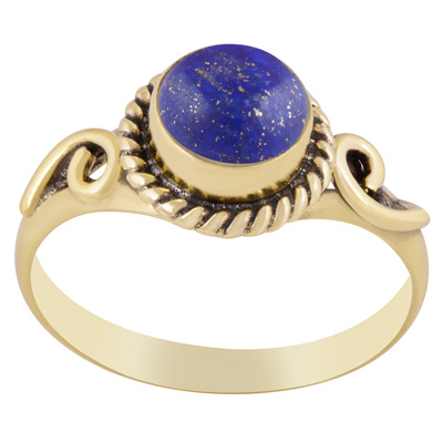 Beautiful Twisted Wire Work Around Lapis Round Shape Solid Brass Ring