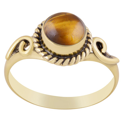 Beautiful Twisted Wire Work Around Tiger's Eye Round Shape Solid Brass Ring
