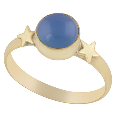 Home | Fashion Rings | Brass Gemstone Rings | Gorgeous Star Work Around Blue Chalcedony Round Shape Solid Brass Ring