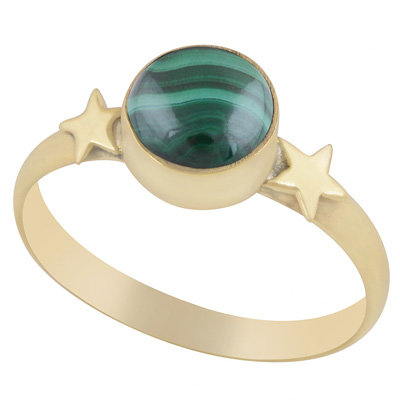 Home | Fashion Rings | Brass Gemstone Rings | Gorgeous Star Work Around Malachite Round Shape Solid Brass Ring