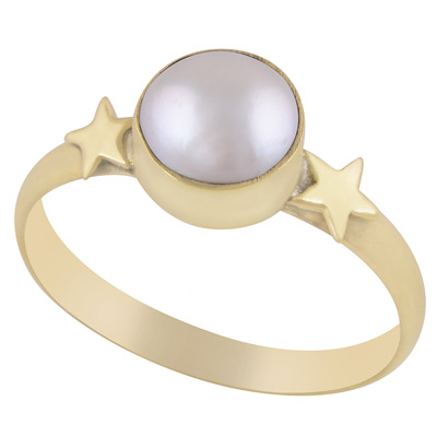 Home | Fashion Rings | Brass Gemstone Rings | Gorgeous Star Work Around Pearl Round Shape Solid Brass Ring