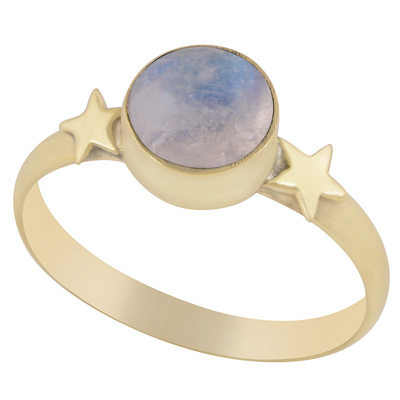 Home | Fashion Rings | Brass Gemstone Rings | Gorgeous Star Work Around Rainbow Moonstone Round Shape Solid Brass Ring