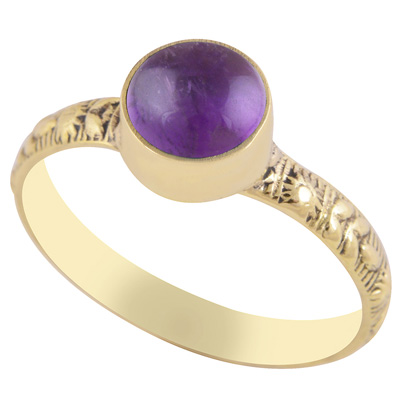 Home | Fashion Rings | Brass Gemstone Rings | Gorgeous Embossed Work Around Amethyst Round Shape Solid Brass Ring