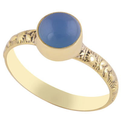 Home | Fashion Rings | Brass Gemstone Rings | Gorgeous Embossed Work Around Blue Chalcedony Round Shape Solid Brass Ring