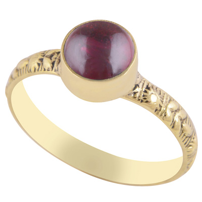 Home | Fashion Rings | Brass Gemstone Rings | Gorgeous Embossed Work Around Garnet Round Shape Solid Brass Ring