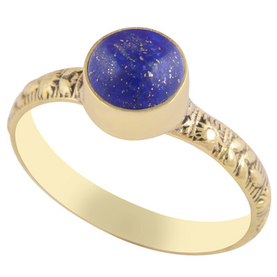 Home | Fashion Rings | Brass Gemstone Rings | Gorgeous Embossed Work Around Lapis Round Shape Solid Brass Ring